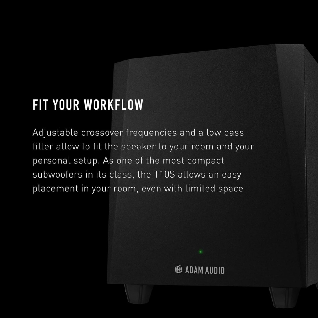 The subwoofer’s performance, features and connectivity are engineered specifically to complement ADAM Audio’s T5V and T7V speakers.