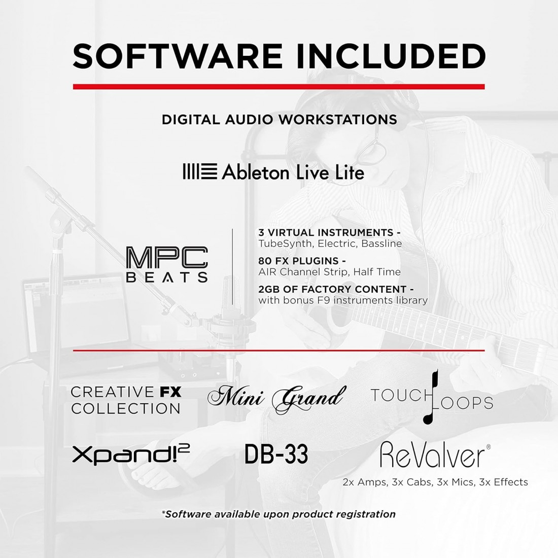 The AIR 192|6 comes complete with a software package that has everything to get you started. With a powerful DAW to suit your production needs, AIR 192|6 includes Ableton Live Lite and MPC Beats.