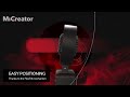 The MiCreator Studio features a heavy-duty die-cast housing, making it durable enough for life on the road. Its tilt-adjustable head allows for precise positioning, and the exchangeable faceplates (red and black included) let you customize the look of your setup. It's a professional tool that looks as good as it sounds.