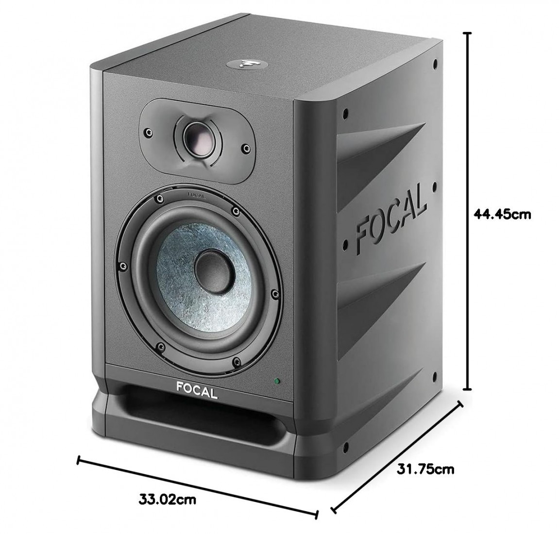 High frequencies are handled by Focal's renowned aluminum inverted dome tweeter. This design acts like a micro-loudspeaker, offering very low directivity and a wide sweet spot compared to traditional domes. The integrated waveguide ensures incredible spatial dispersion, providing a stable and wide stereo image that is critical for making precise EQ and panning decisions during the mixing process.