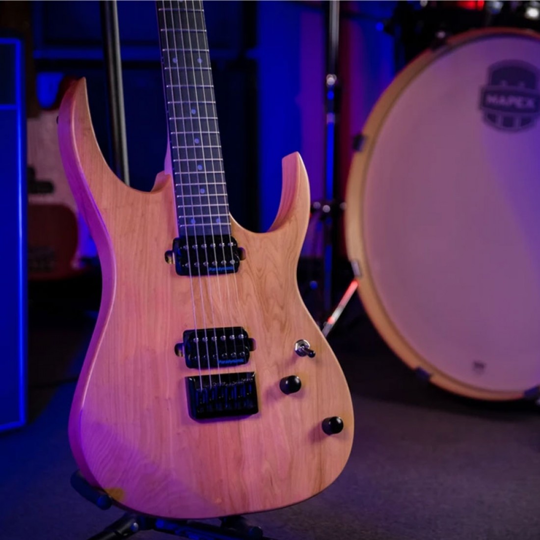 Stealth Metallic Black Hardware: The natural grain of the wood is beautifully contrasted by Satin Metallic Black hardware. This includes the bridge, die-cast tuners, and knurled control knobs, giving the guitar a professional, modern-boutique look.