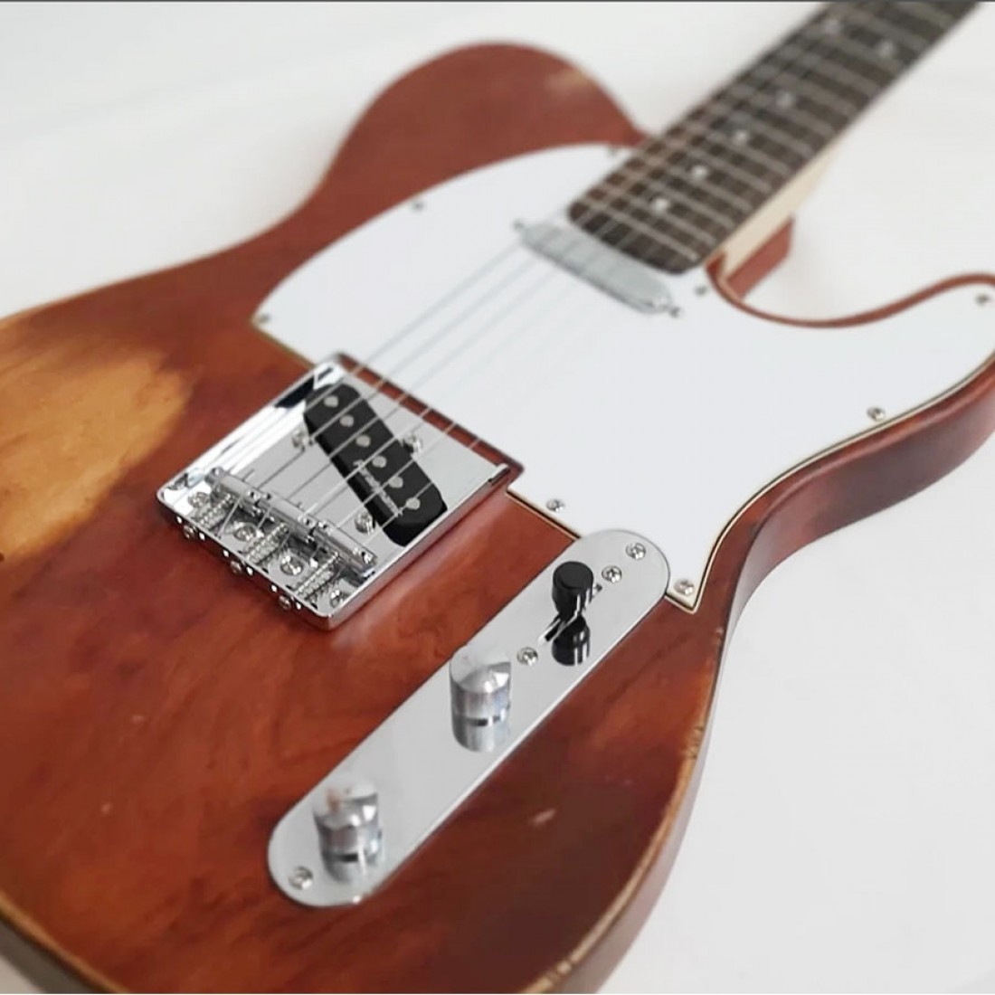 The "Relic" Red Wood Aesthetic: The TSA-031 stands out with its hand-distressed Red Wood finish. The aging process creates intentional wear patterns on high-friction areas of the body, revealing the raw texture of the Patagonian Oak beneath. This specialized satin-matte lacquer is non-sticky and tactile, providing a "broken-in" feel right out of the box.