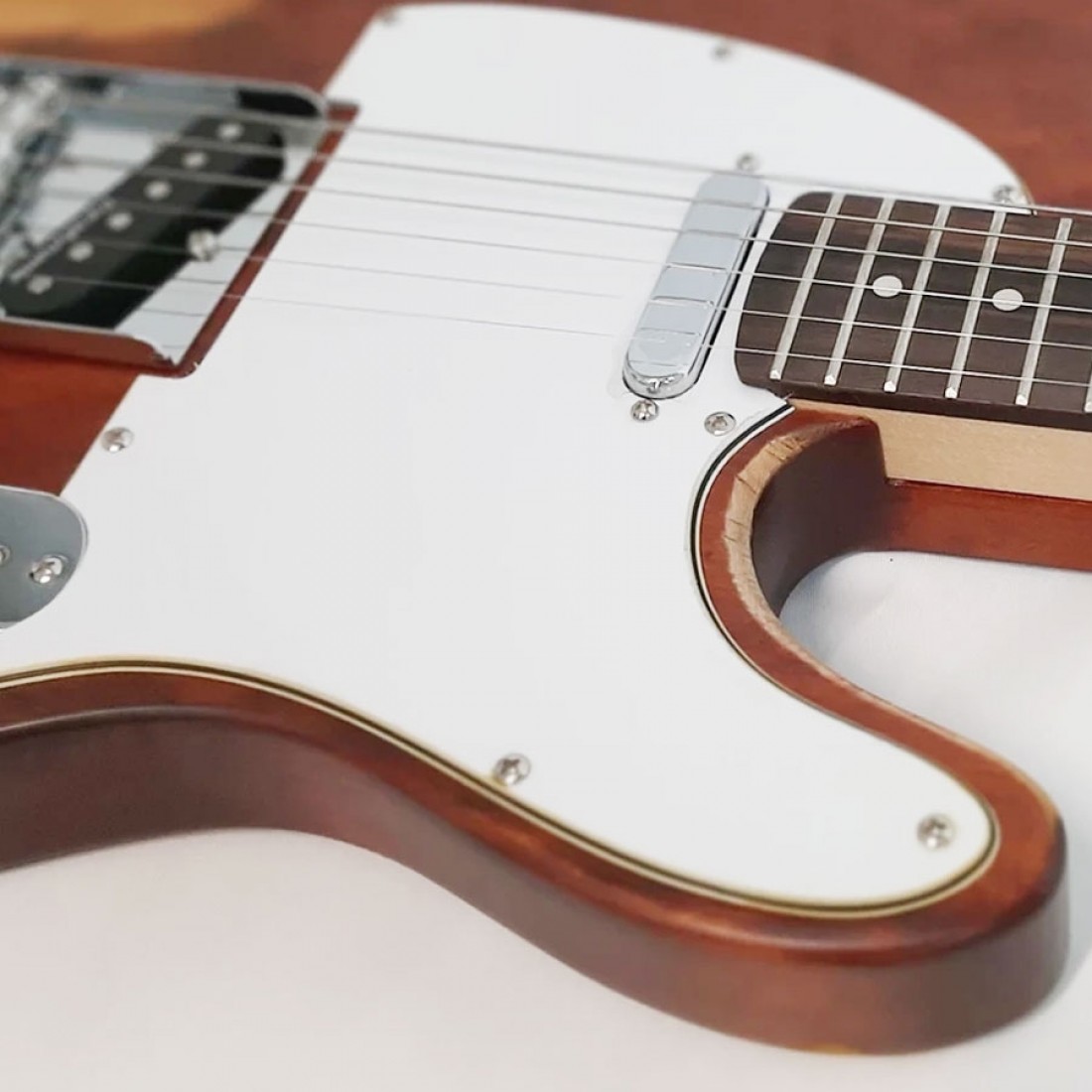 Solid White Oak (Patagonian Oak) Body: Unlike mass-produced guitars made from lighter, softer woods, the TSA-031 is built from solid White Oak. This high-density tonewood provides exceptional natural sustain, a punchy mid-range, and a distinctive percussive "snap" that is essential for the classic TL sound.