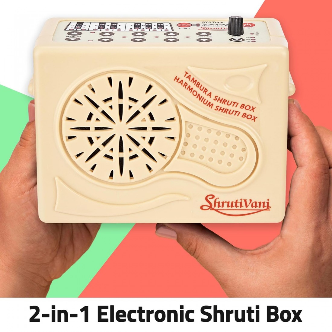 Electronic Harmonium: Provides a constant, steady drone similar to a traditional bellows-pumped Shruti Box.